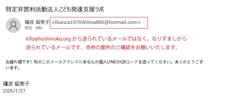 当法人の公式メールアドレス(info@hoshinoko.org)から